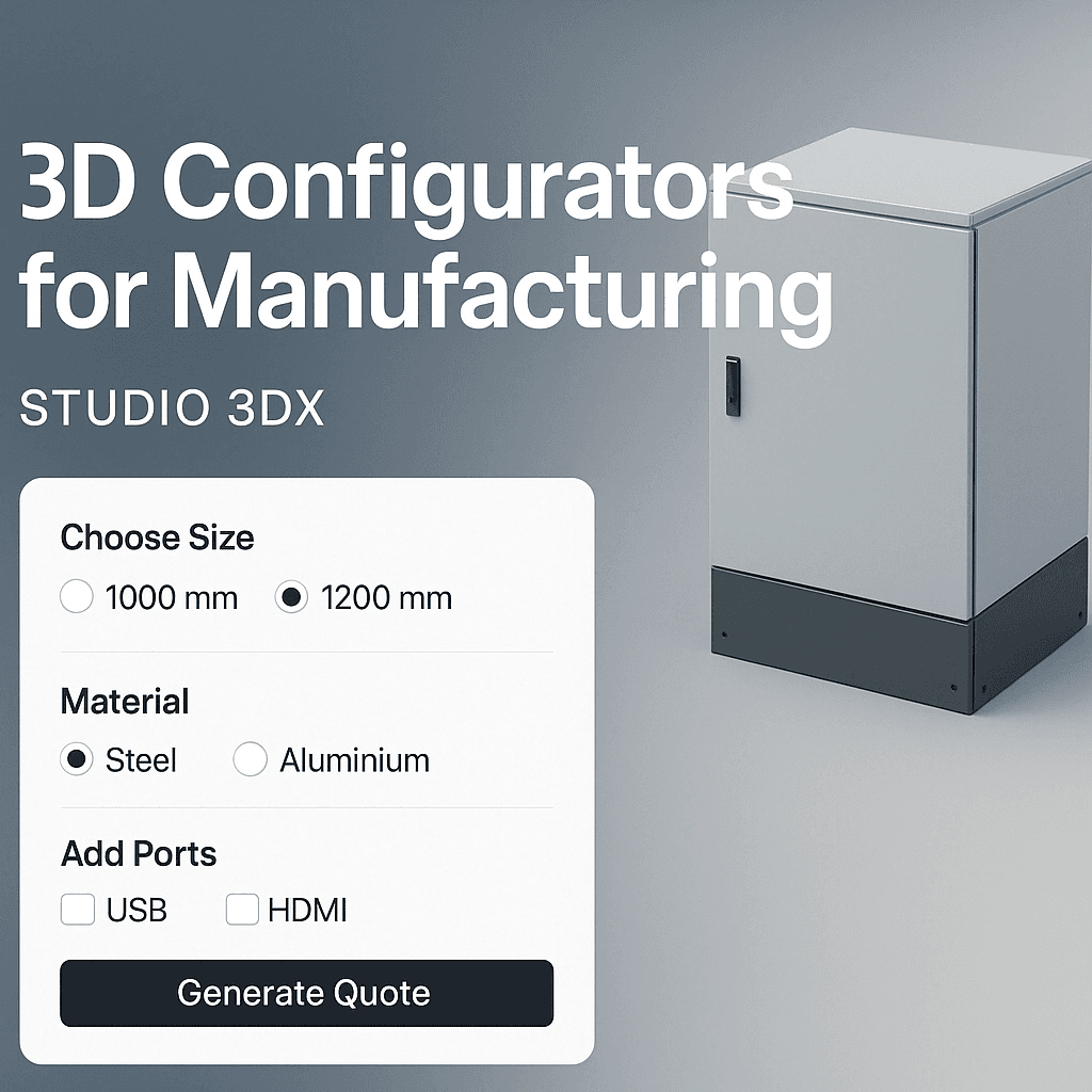 A 3D configurator reduces errors, standardises requests, and accelerates quoting. Clients and resellers can visualise product options instantly, making it easier to understand, sell, and produce complex custom solutions.